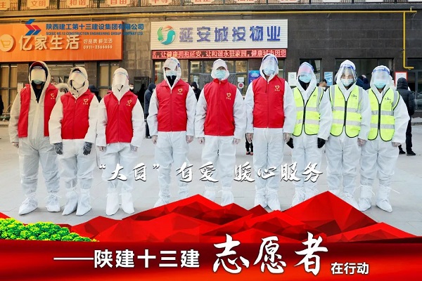 陜建十三建集團(tuán)黨員先鋒隊(duì)和青年突擊隊(duì)組成的志愿者