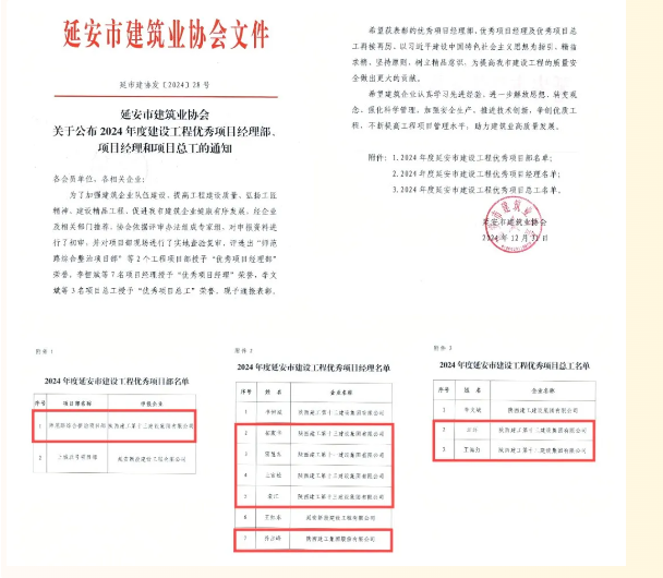 2024年,在延安市委、市政府和陜建集團黨委的堅強領導下,十三建集團貫通落實黨的二十屆三中全會精神和習近平總書記歷次來陜考察重要講話重要指示,踐行“11359”工作方針,突出經營提質、改革蓄能、管理強基、品牌增效、黨建聚力“五個抓手”,沉著應變、綜合施策,在復雜的環(huán)境和不利的行業(yè)形勢中穩(wěn)步前行,先后榮獲延安市建筑業(yè)穩(wěn)增長優(yōu)秀企業(yè)、全國工程建設AAA級信用企業(yè)等榮譽。